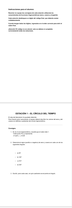 Actividad lúdica para explorar funciones trigonométricas, identidades y cuadrantes de una manera completamente diferente.